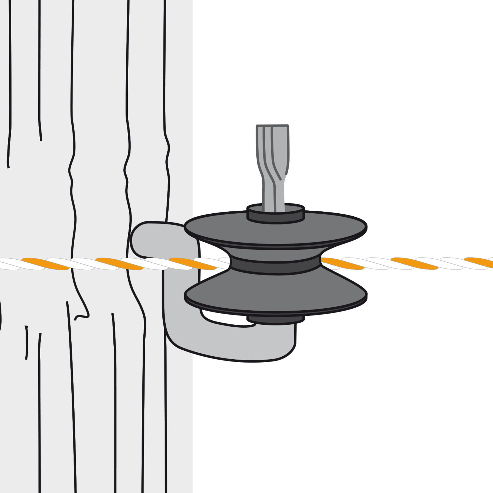 Pour piquet de coin bois et exclusivement pour fil synthétique. Le fil peut sortir de la poulie.