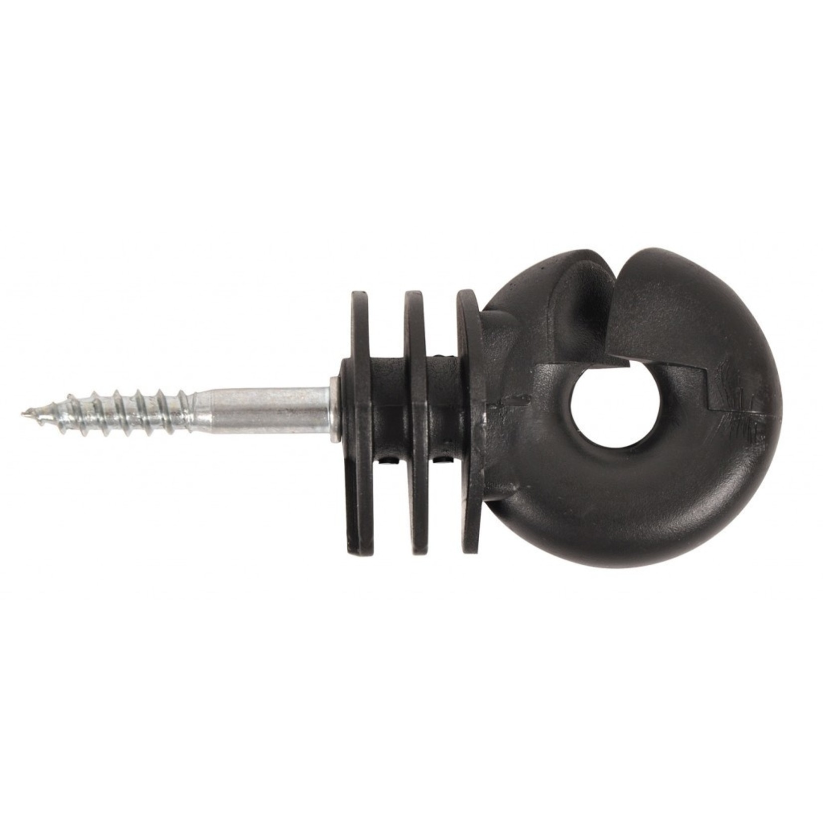 Isolateur à vis robuste pour piquets de bois. Ces isolateurs n'ont pas d'âme métallique, excluant tout risque de court-circuit.